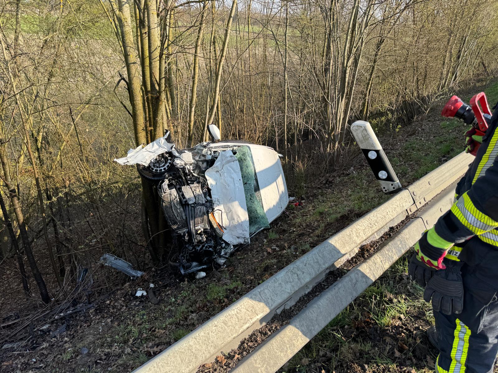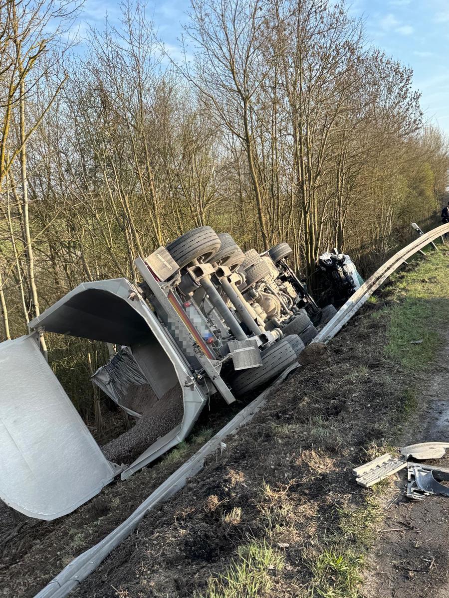 Beim Verkehrsunfall war es zu einem Frontalzusammenstoß zwischen einem LKW und einem PKW gekommen. Der LKW-Fahrer konnte sein Fahrzeug selbstständig verlassen. Die Person aus dem PKW wurde durch den Rettungsdienst in ein umliegendes Krankenhaus gebracht, erlag dort jedoch leider ihren schweren Verletzungen.